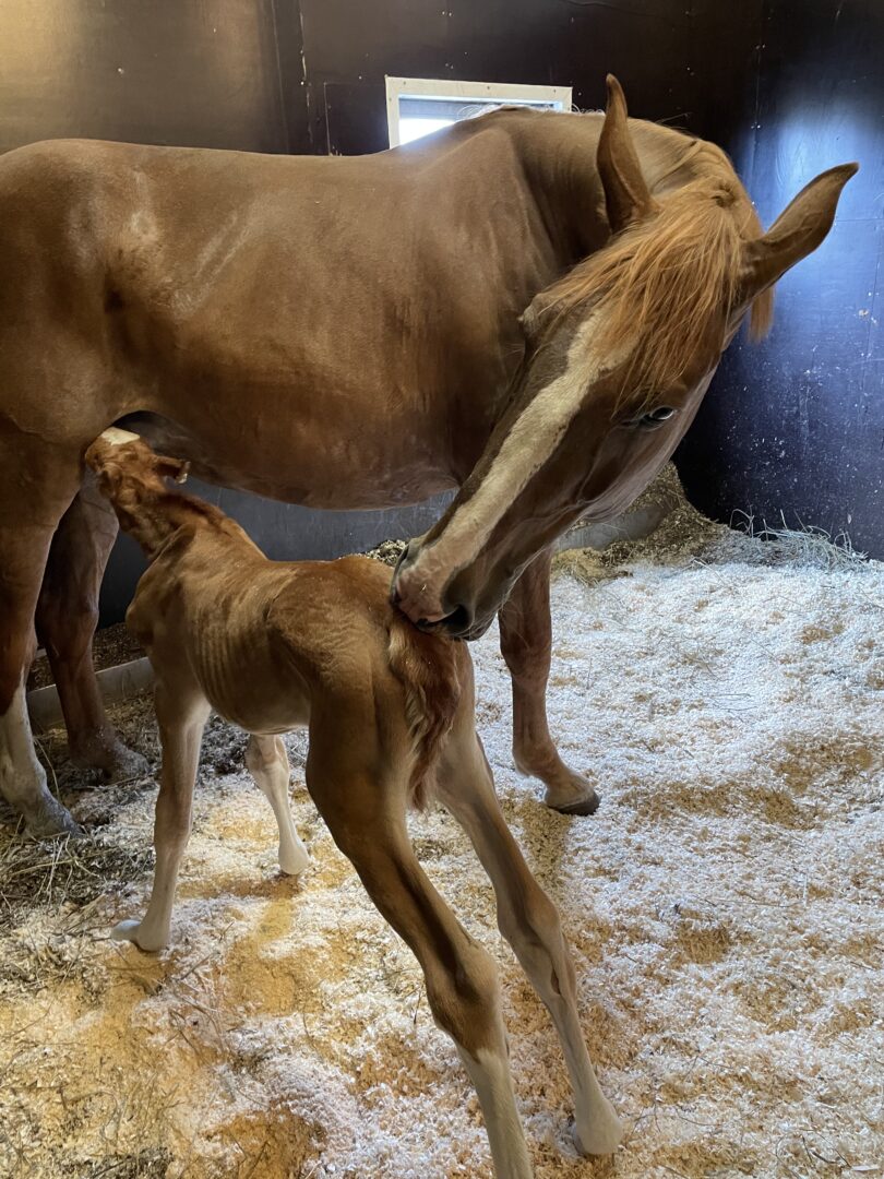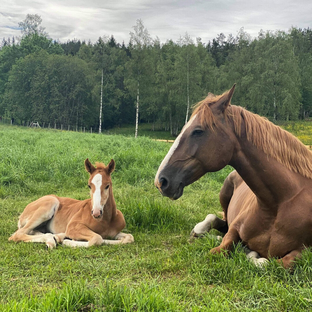 Hun er også en fantastisk mor. Omsorgsfull, stabil og en naturlig leder i flokken. Hun tar til seg andre føll og skaper ro rundt seg.